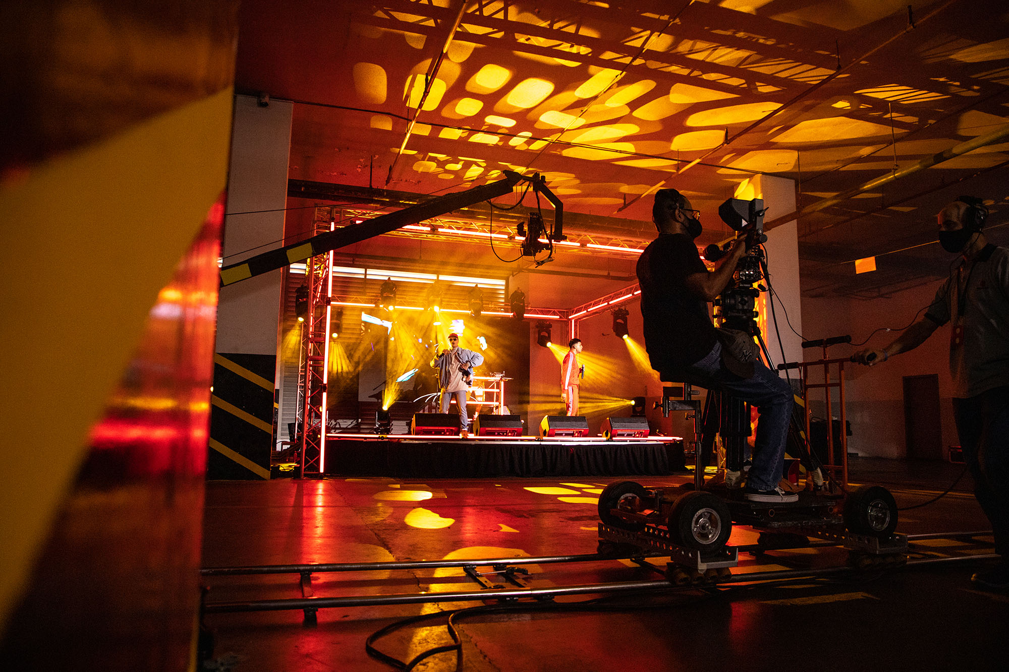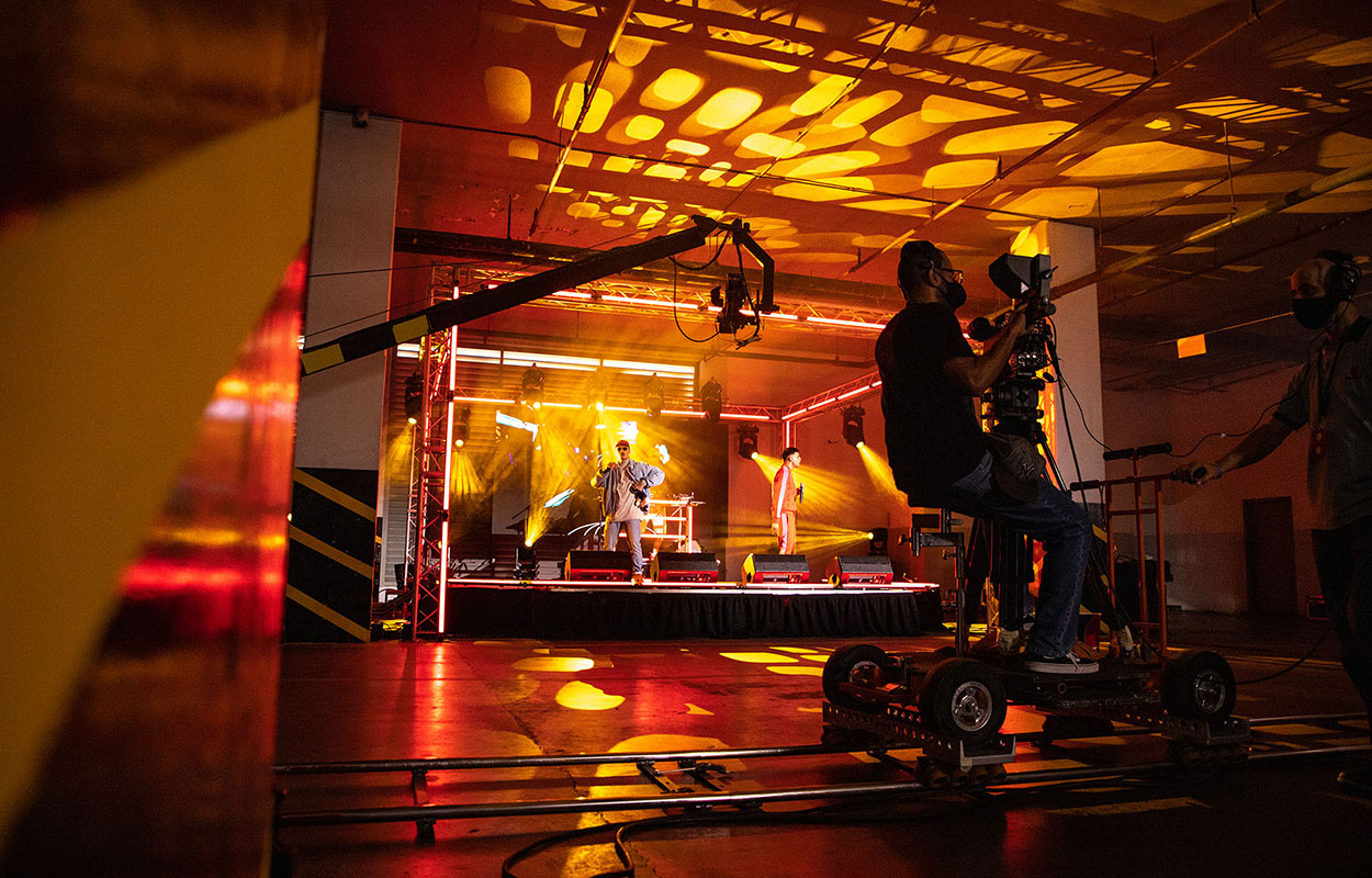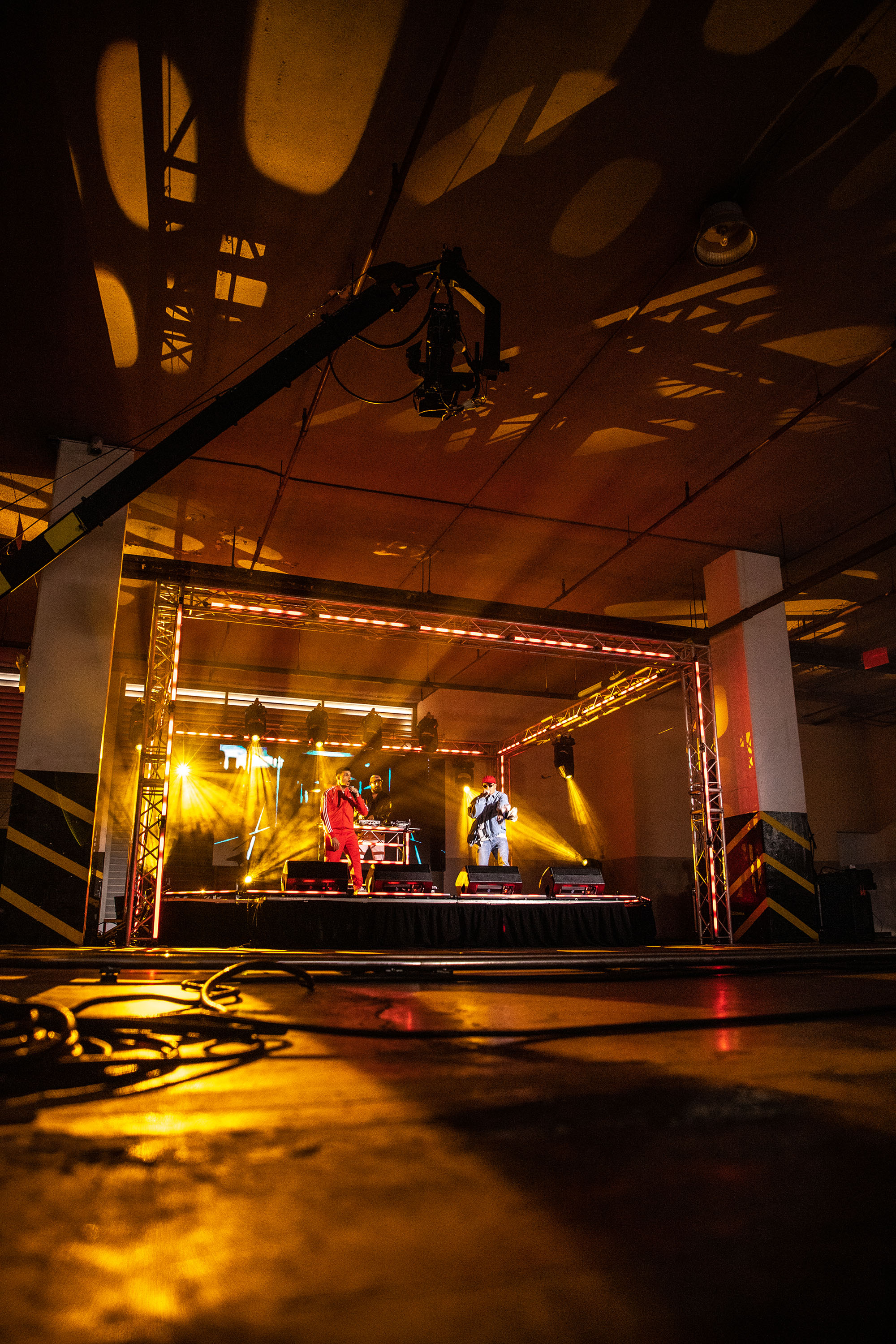 Mientras él se preparaba para salir, caminamos juntos hasta el estacionamiento donde montaron la tarima. Y ahí… se prendió el fuego. Ensayos, ajustes, vibras encendidas.